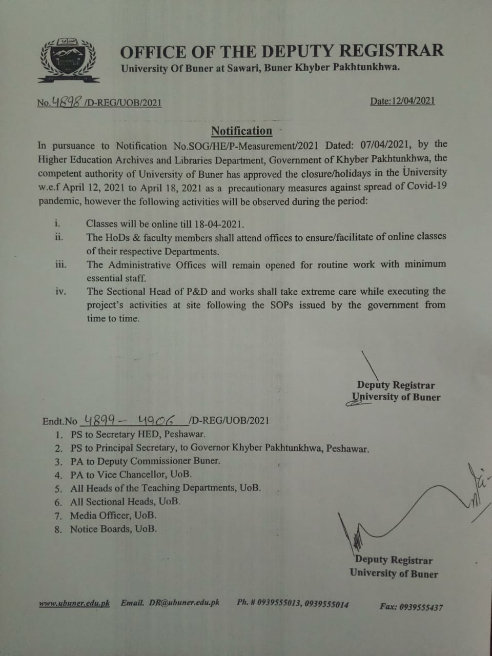 UNIVERSITY OF BUNER SWARI, PAKISTAN